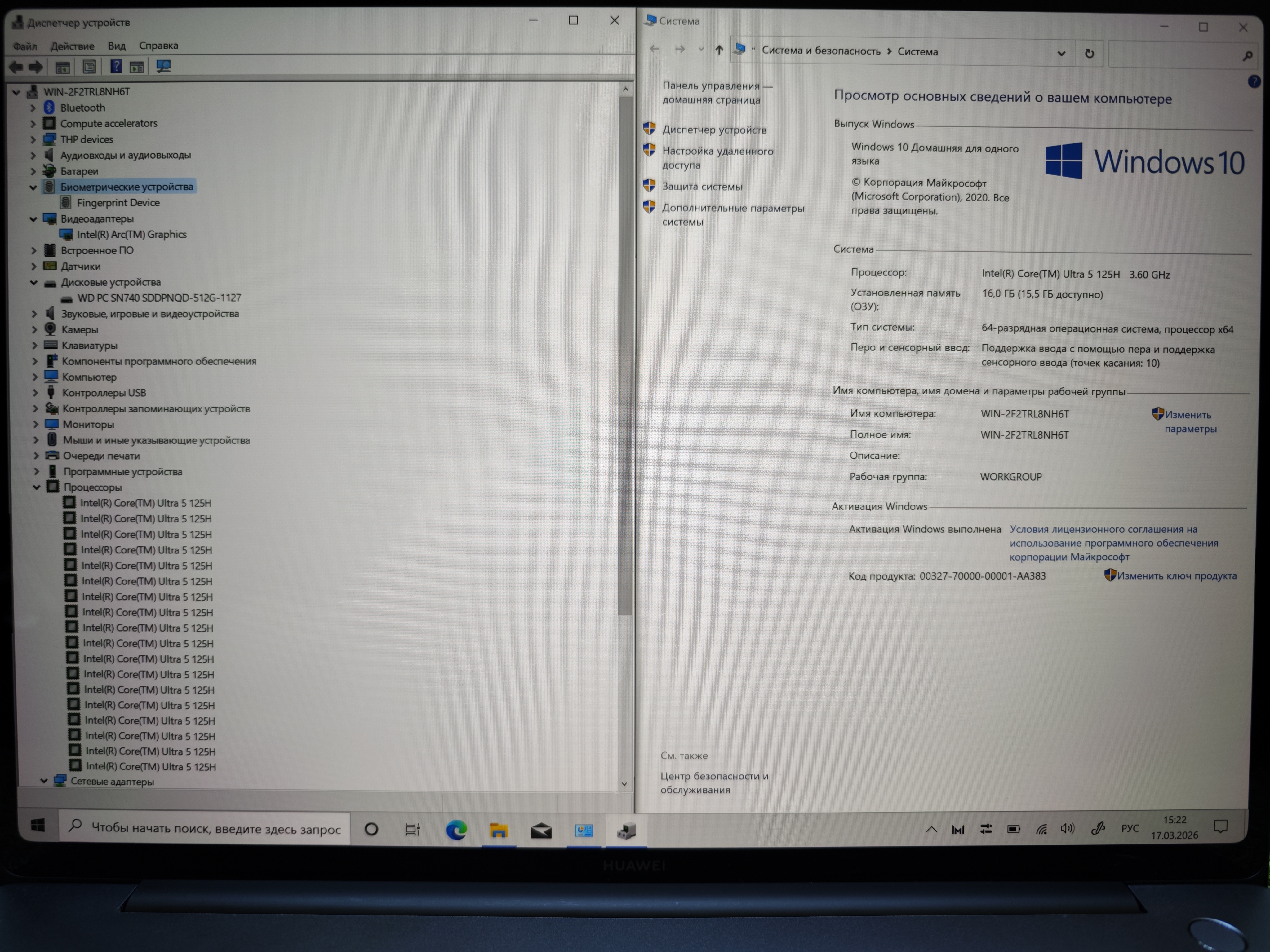 Процecсор: Intel Core Ultra 5 125H