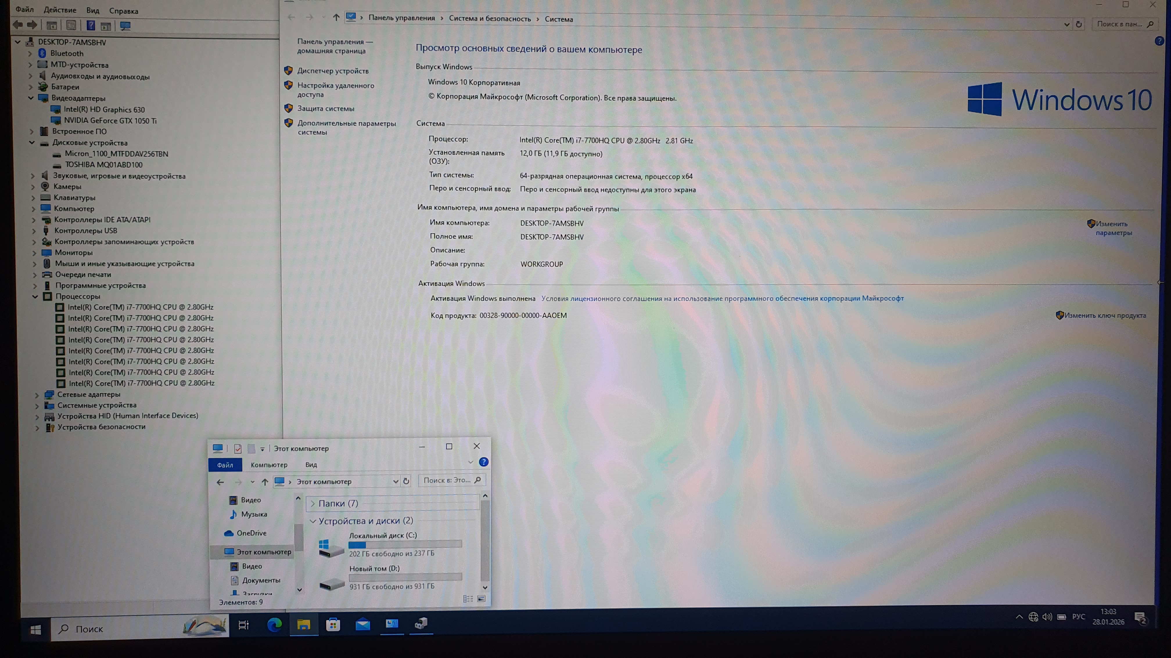 Процессор: Intel Core i7 7700HQ 2.8ГГц