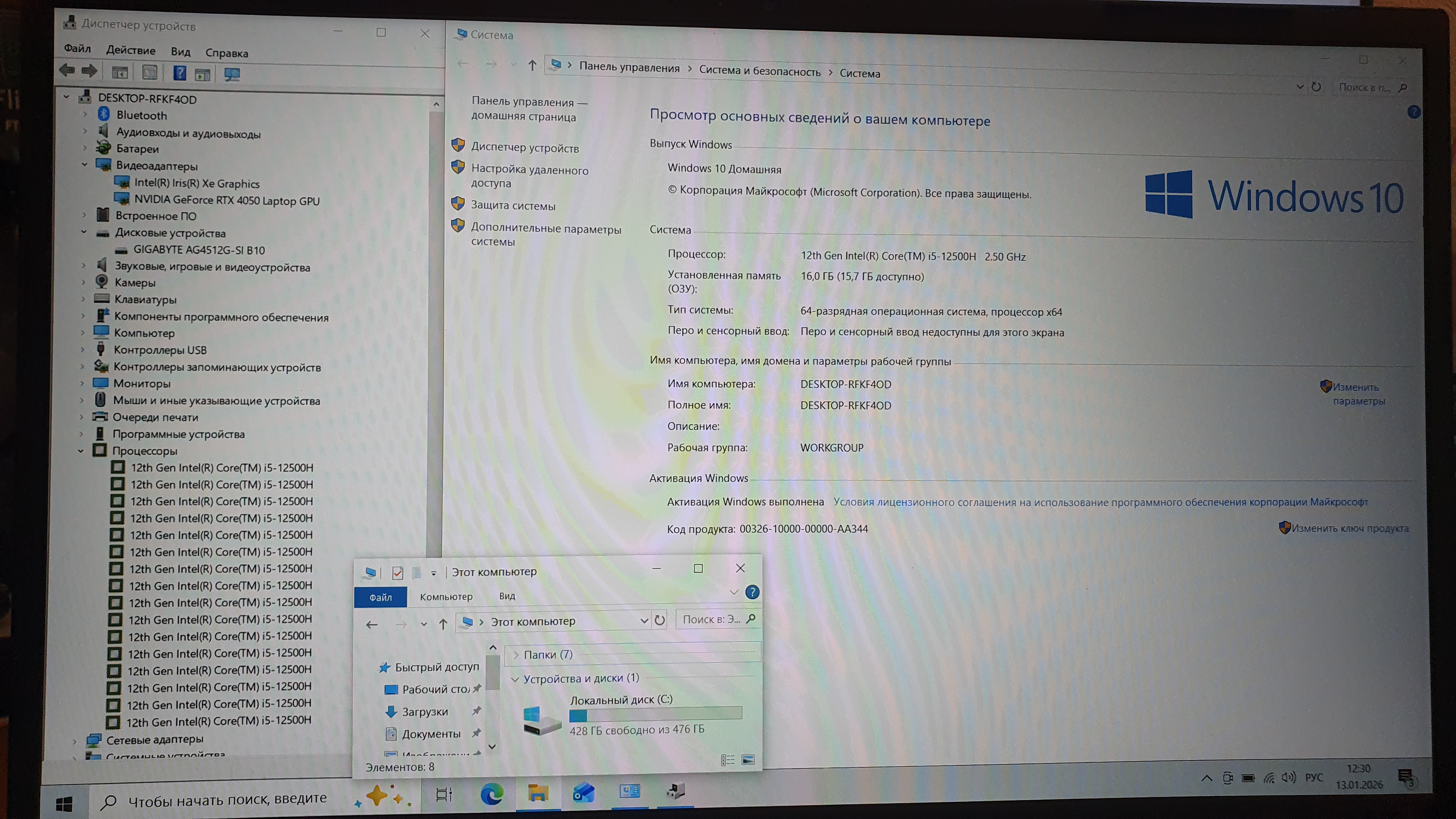 Процессор: Intel Core i5 12500H 2.5 ГГц (4.5 ГГц, в режиме Turbo)