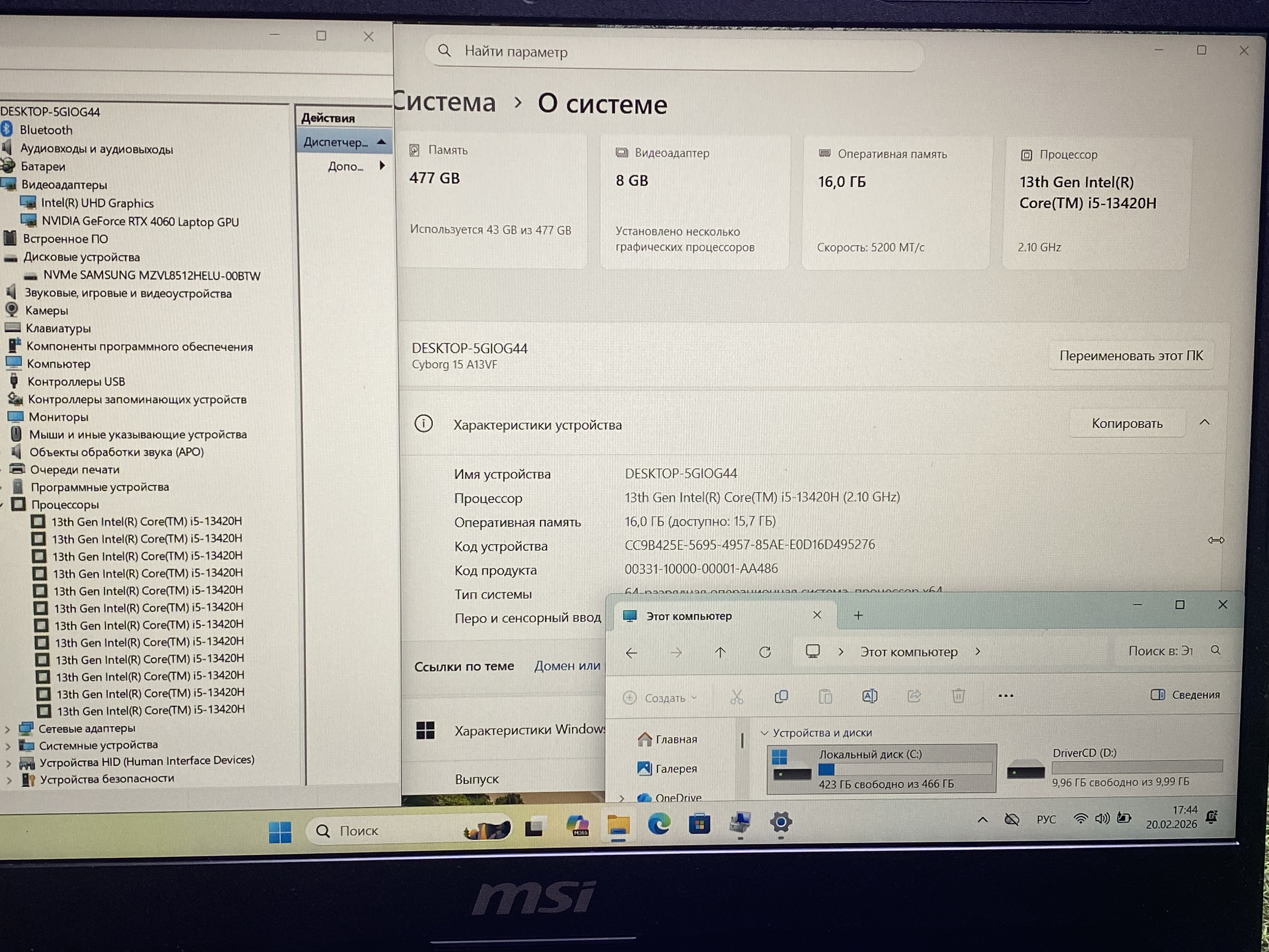 Ноутбук игровой MSI Cyborg 15 A13VF-1223XRU 9s7-15k111-1223 15.6", IPS, Intel Core i5 13420H 2.1ГГц, 8-ядерный, 16ГБ DDR5, 512ГБ SSD, NVIDIA GeForce RTX 4060 для ноутбуков - 8 ГБ в хорошем состоянии