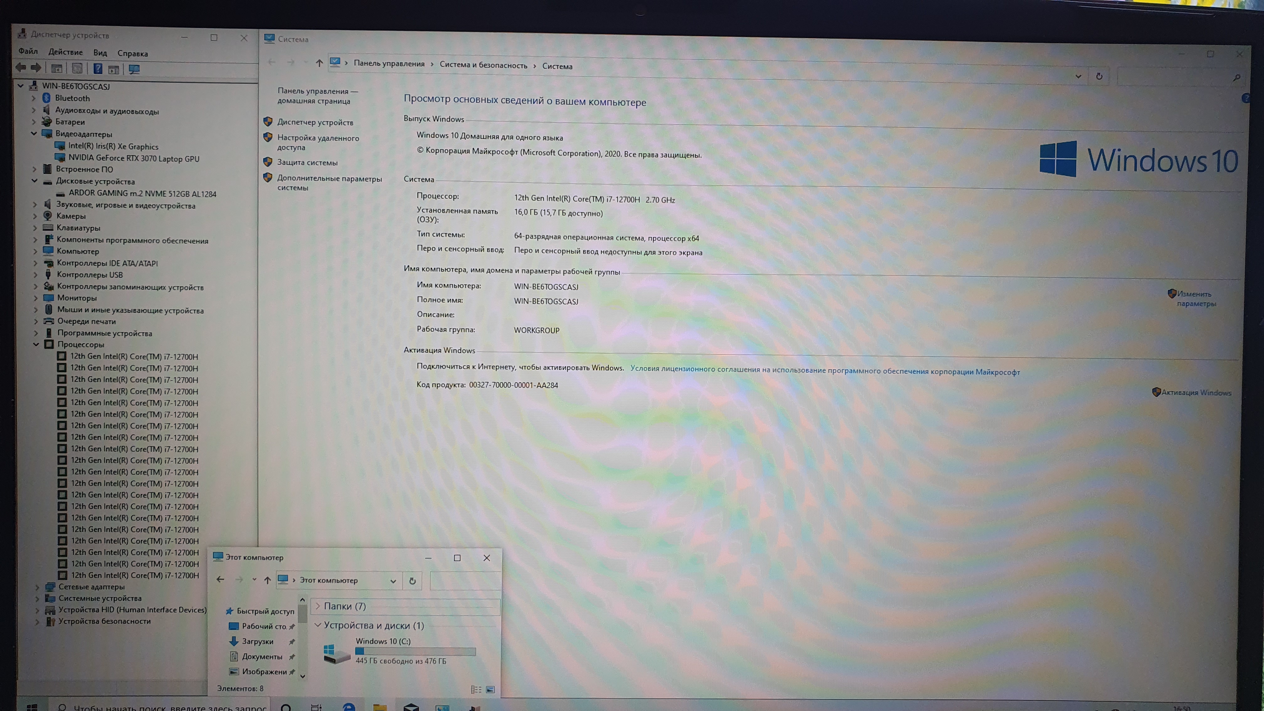 Процecсор: Intel Core i7-12700H, ядра: 14 x 3,5 ГГц