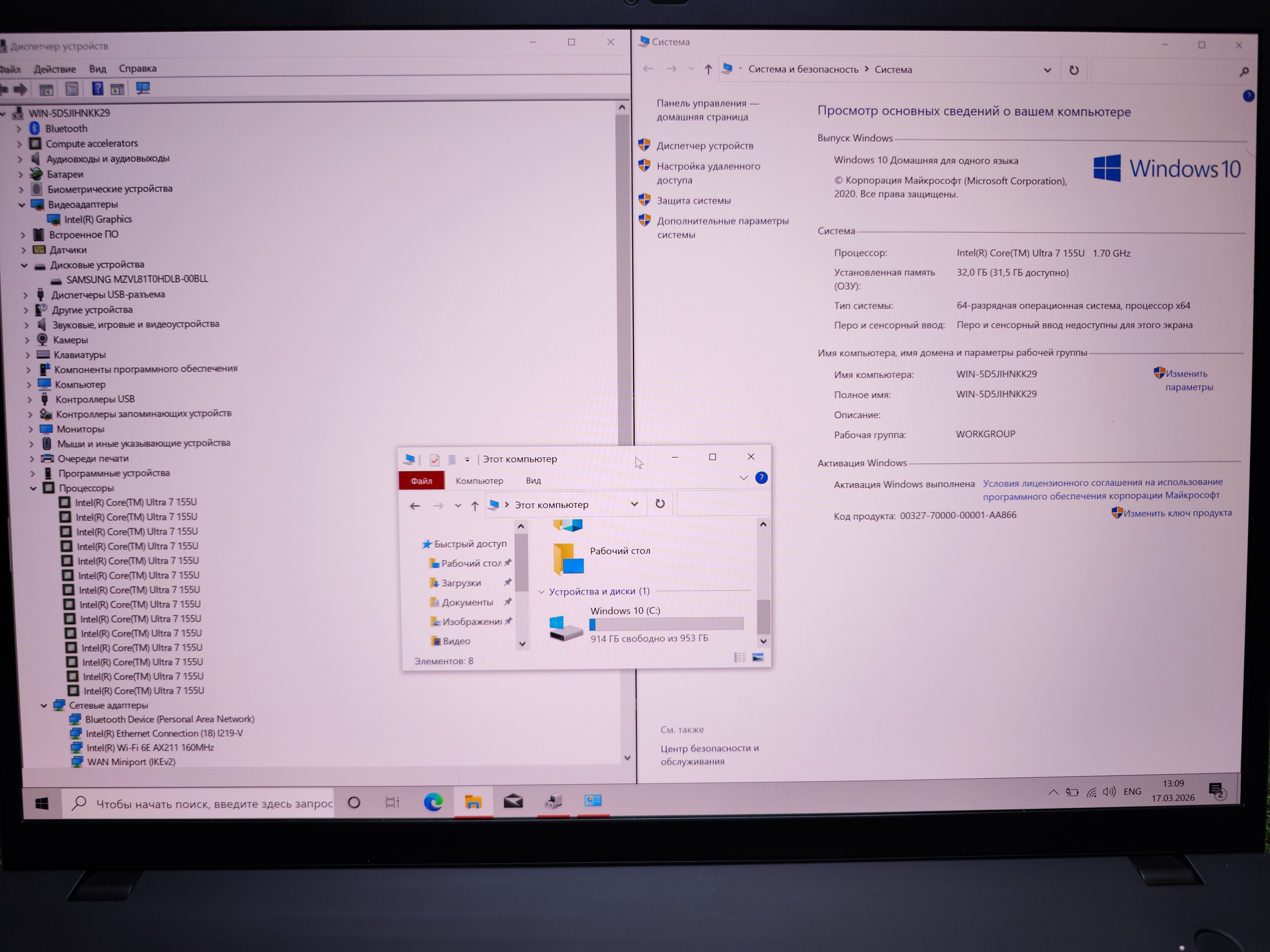 Процecсор: Intel Core Ultra 7 155U