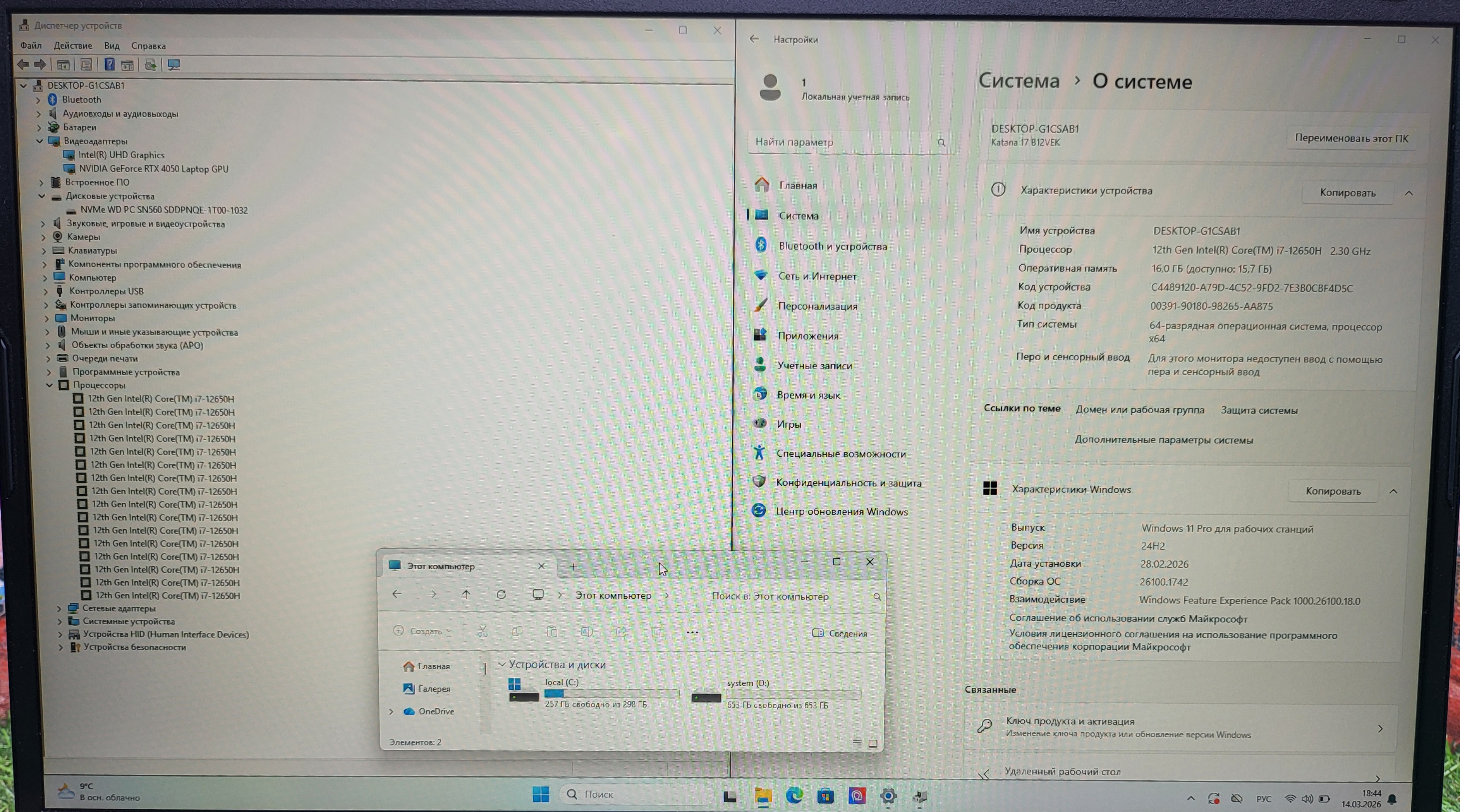 Intel Core i7-12650H, RTX 4050 6Gb, 16Gb DDR5 4800Mhz, 1Tb SSD, 144hz в отличном состоянии