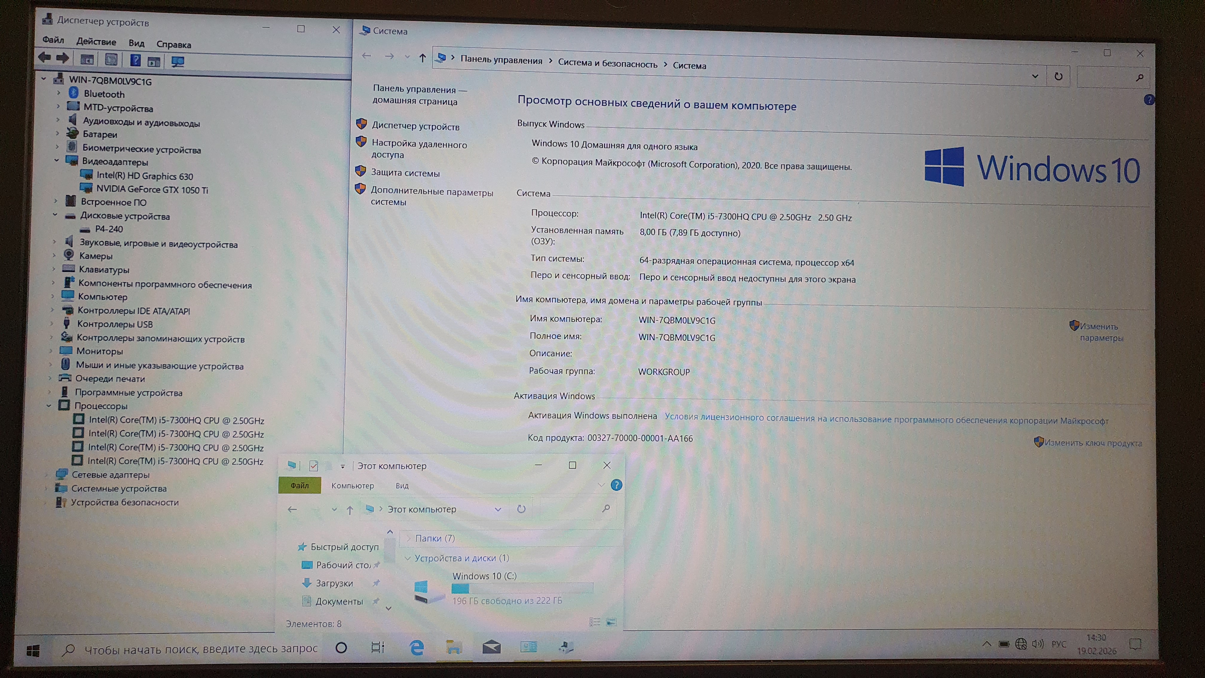 Процecсор: Intel Core i5 7300HQ 2.5 ГГц