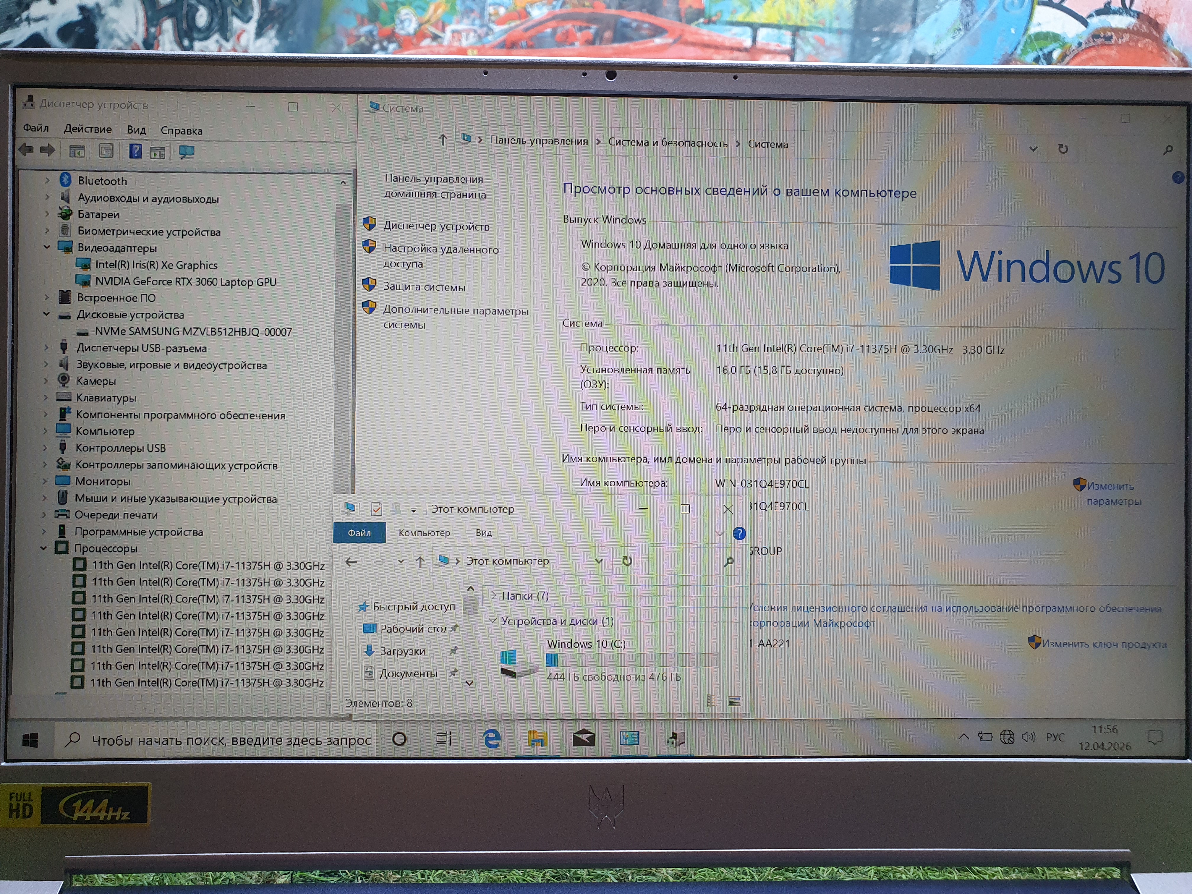 Процессор: Intel Core i7 11375H 3.30GHz