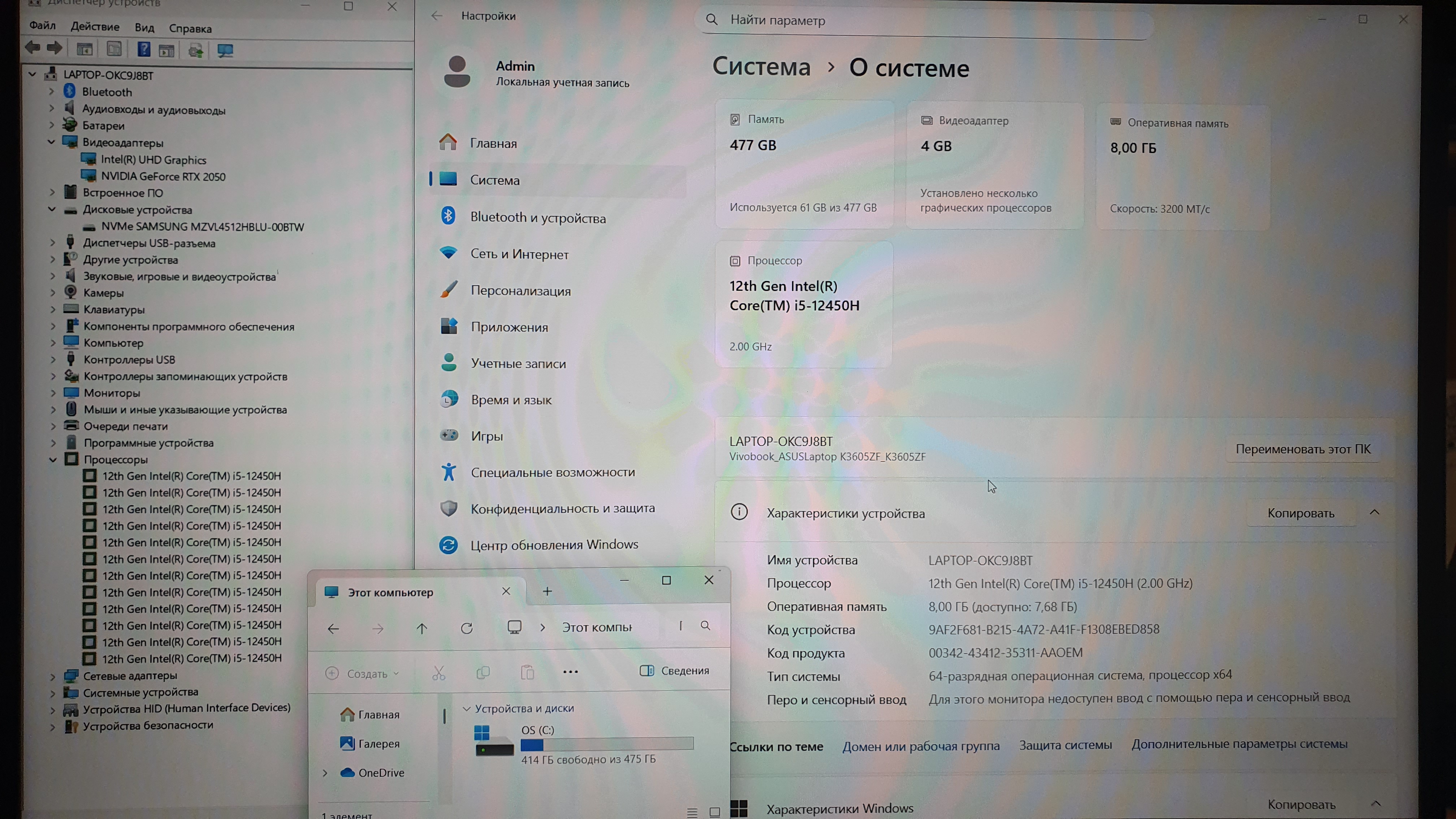 Ноутбук ASUS VivoBook K3605ZF K3605ZF-MB336W/16"/Core i5-12450H/8/512/RTX 2050 в очень хорошем состоянии
