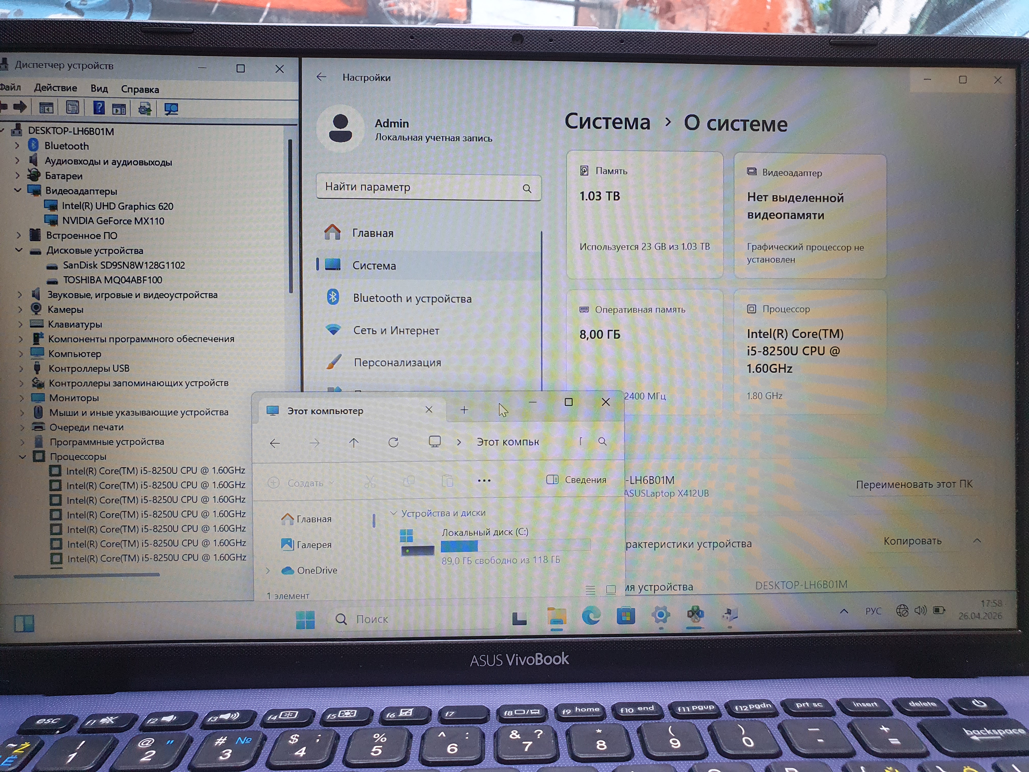 Ноутбук ASUS P412U (Core i5-8250U/8Gb DDR4/NVIDIA GeForce MX110 - 2 ГБ) в хорошем состоянии