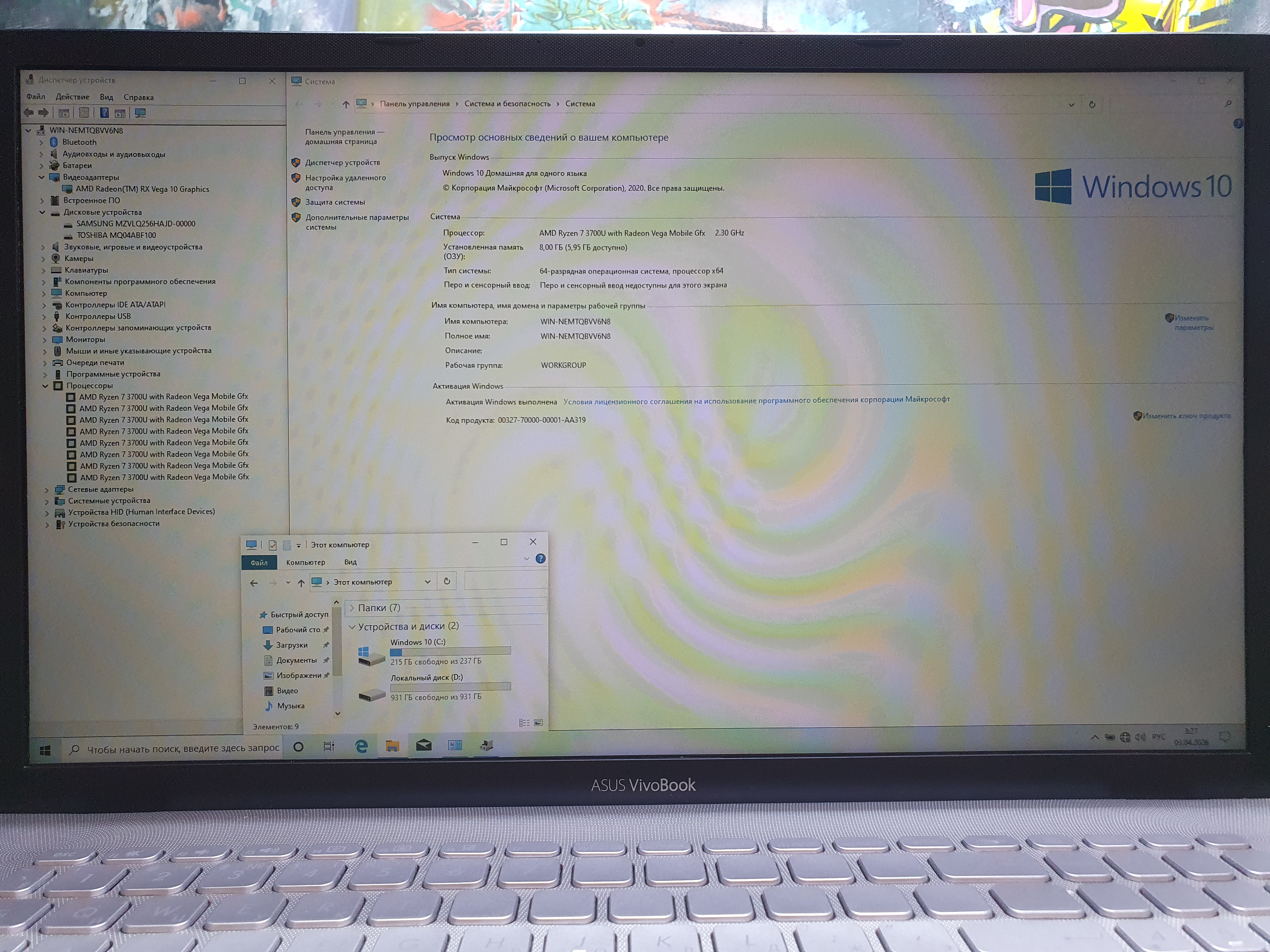 Процecсор: AMD Ryzen 7 3700U 2.3ГГц