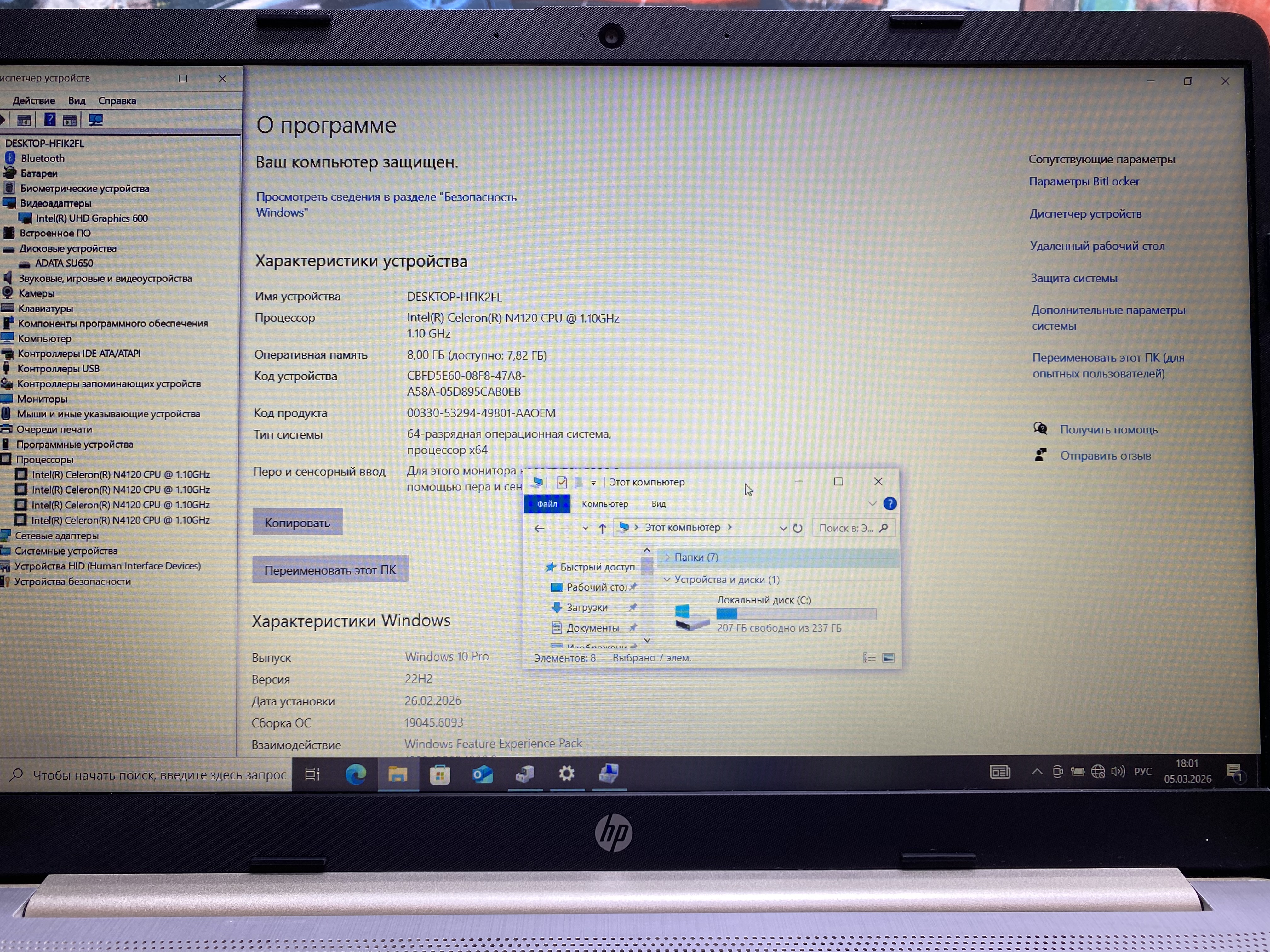 Процессор: Intel Celeron N4120