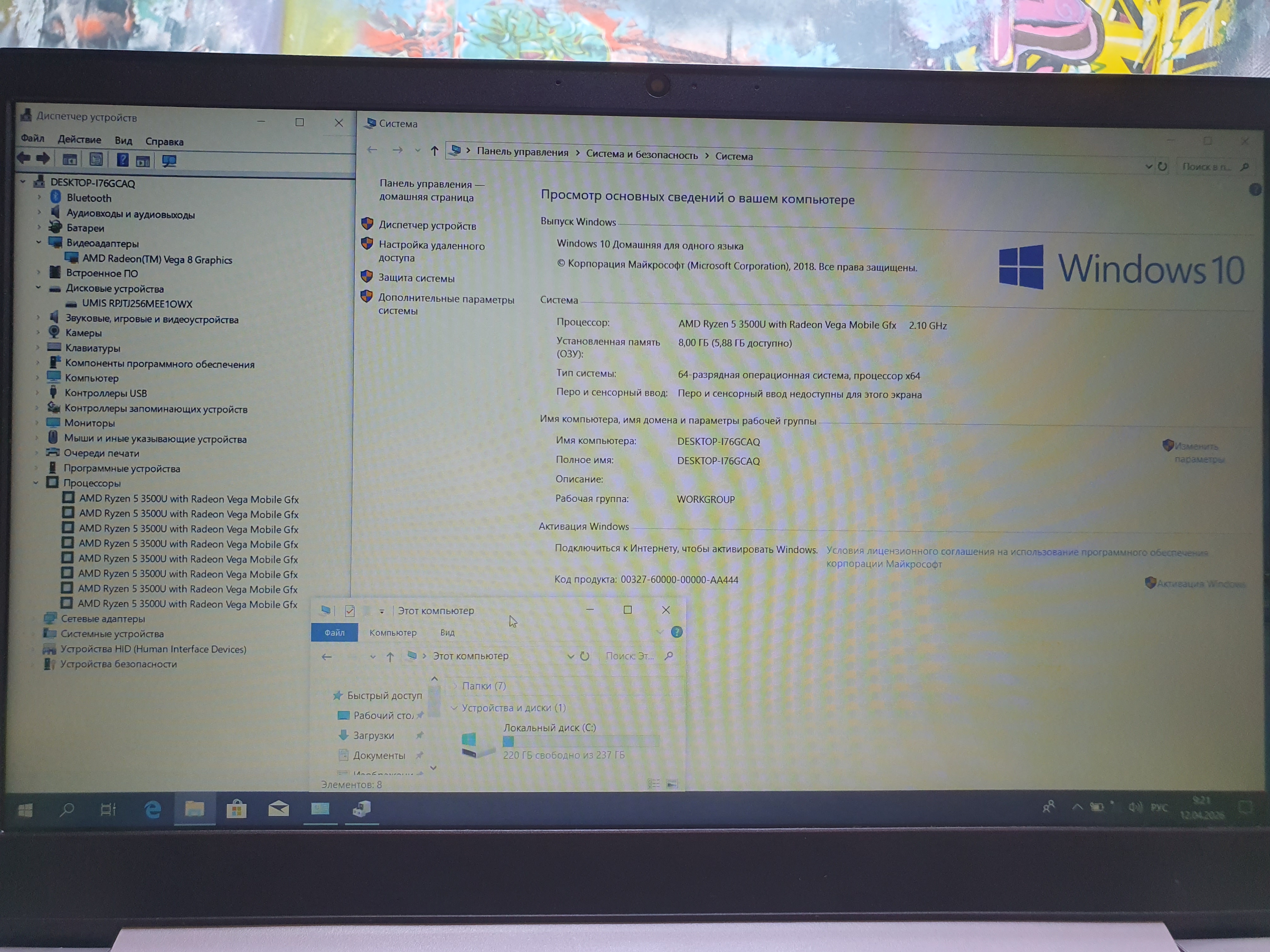 Процессор: AMD Ryzen 5 3500U 2.1 ГГц