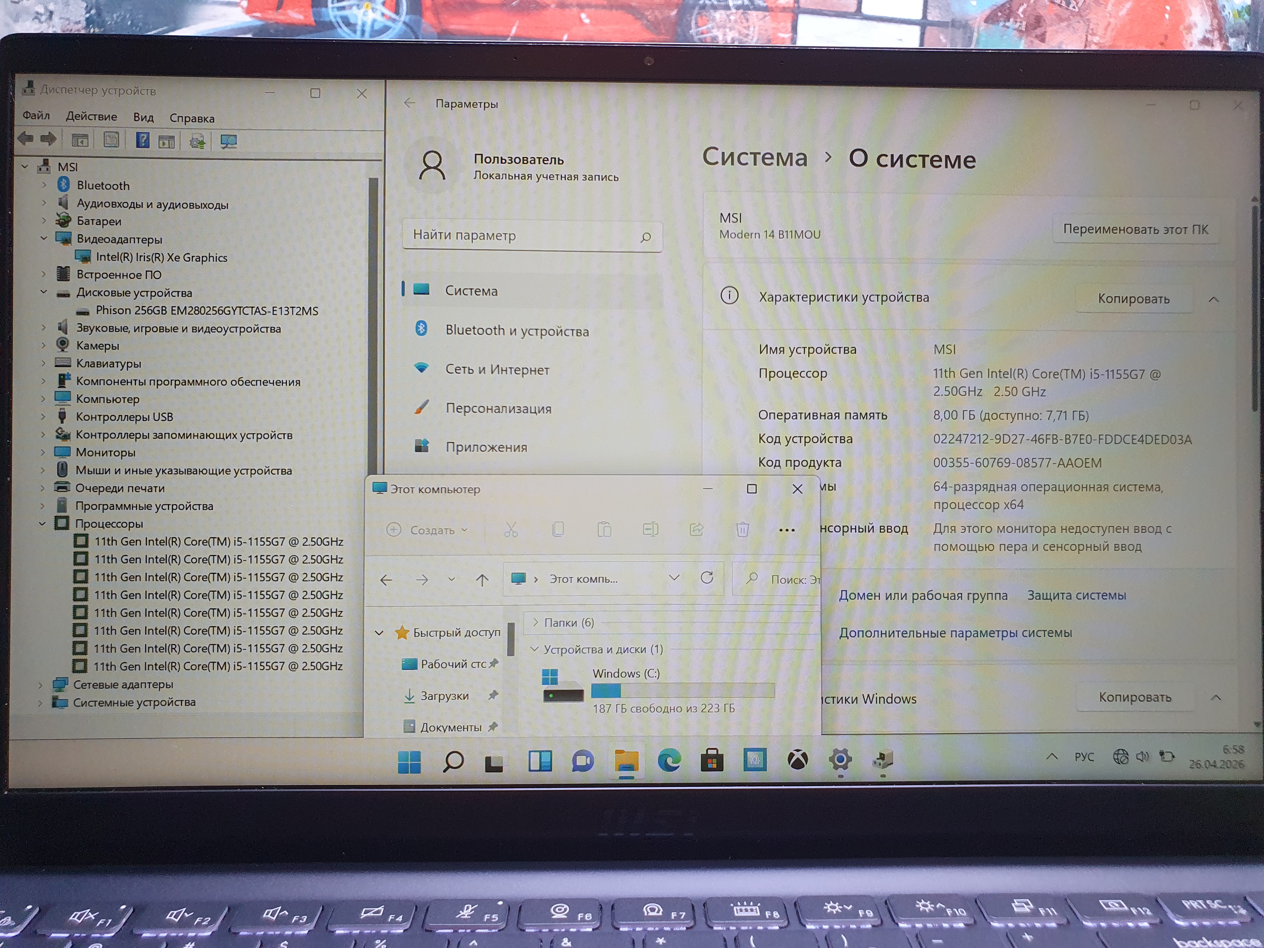 Ноутбук MSI Modern 14 B11MOU-1239RU 14", IPS, Intel Core i5 1155G7 2.5ГГц, 4-ядерный, 8ГБ DDR4, 256ГБ SSD, Intel Iris Xe graphics в хорошем состоянии